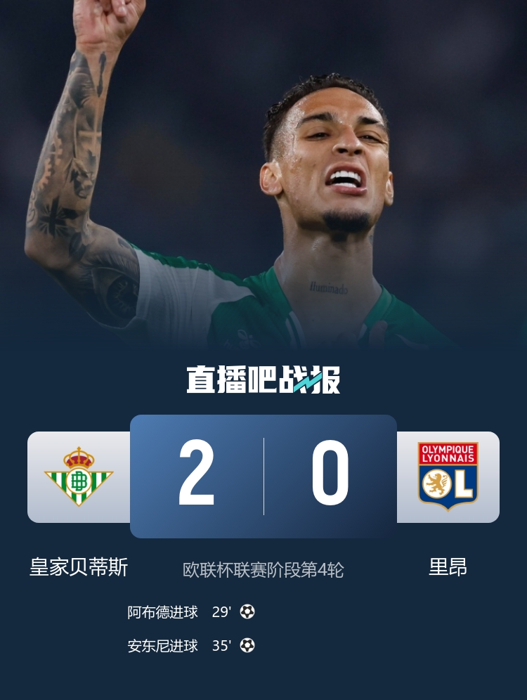 Ở vòng 4 Europa League, Real Betis gặp Lyon trên sân nhà. Phút 35 của hiệp một, Anthony ghi bàn bằng cú sút xa và Betis dẫn trước 2-0.