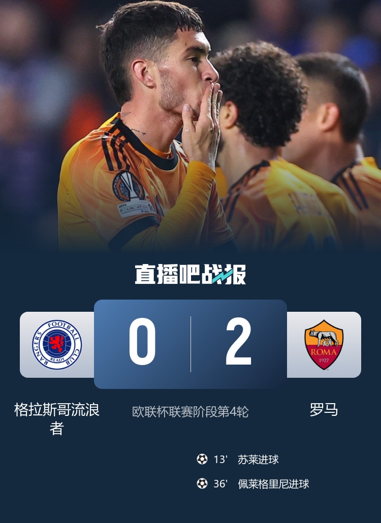 Sule và Pellegrini ghi bàn, còn Celik sút hỏng bàn thắng trống. Roma chấm dứt chuỗi 2 trận toàn thua ở châu Âu với 6 điểm sau 4 trận, trong khi Rangers xếp cuối bảng với 0 điểm.