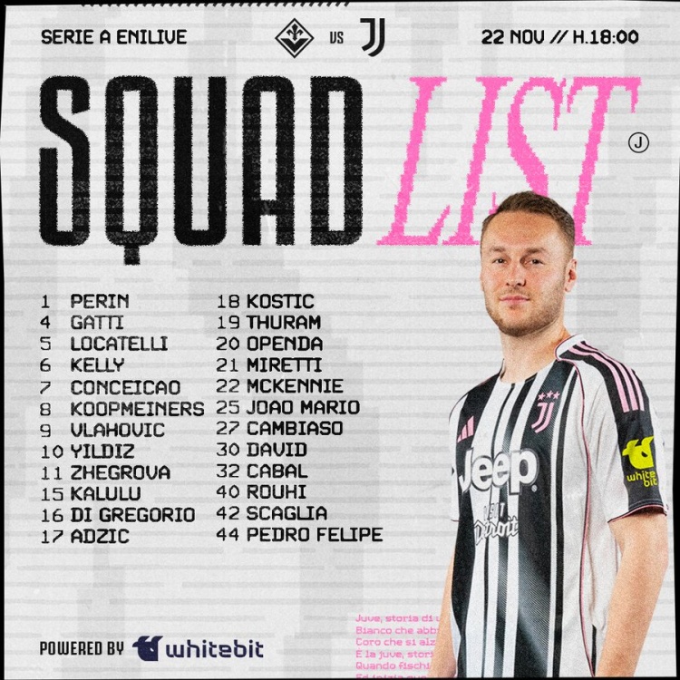 Juventus đã công bố đội hình cho trận đấu sân khách với Florence, do Yildiz dẫn dắt.